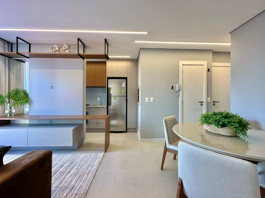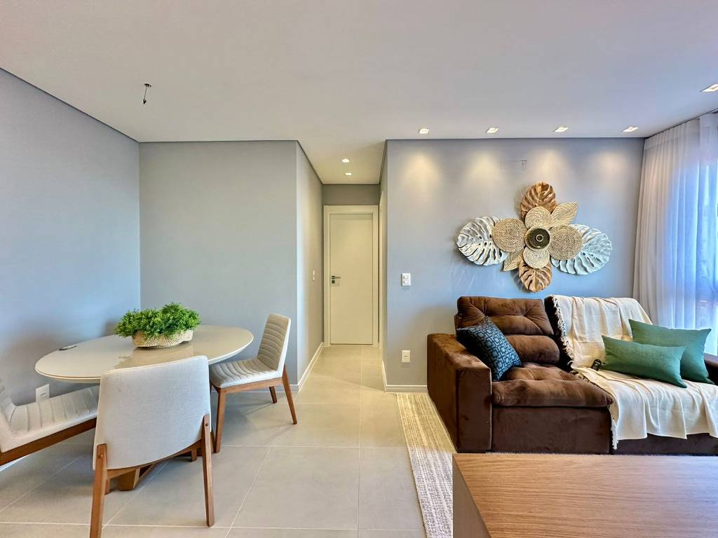 Belíssimo apartamento composto de 2 dormitórios, sendo 2 suítes, finamente mobiliado e decorado, amplo living em 2 ambientes, sendo sala de estar e sala de jantar, cozinha estilo americana, área de serviço, churrasqueira e box de estacionamento privativo. Edifício novo de alto padrão construtivo, composto de 2 elevadores, hall de entrada decorado, Rooftop no ultimo andar, com piscina e espaço gourmet, lounge com lareira e espaço fitness. Agende agora mesmo uma visita! Entrada saldo em 60 x recebendo seu imovel de entrada