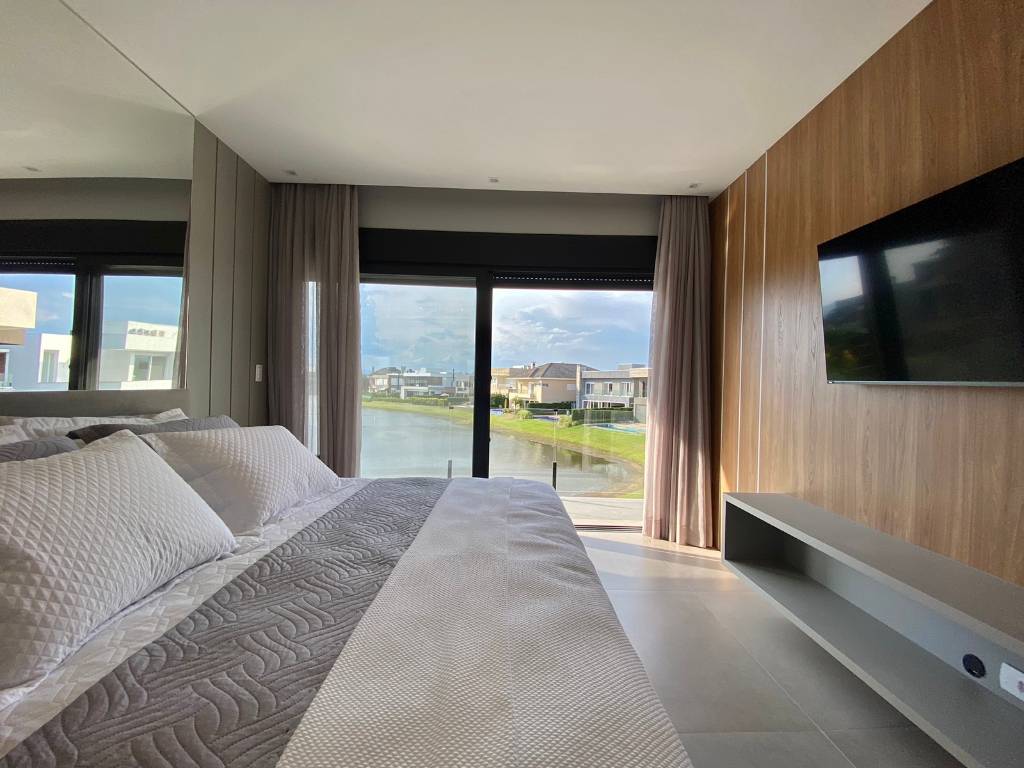 Xangri-lá Condomínio Enseada Lagos Lindo sobrado mobiliado, nunca habitado, com ótima orientação solar, composto por 6 suítes, piscina de concreto, elevador, living em 2 ambientes com lareira, área de serviço, churrasqueira e vaga para veículos.