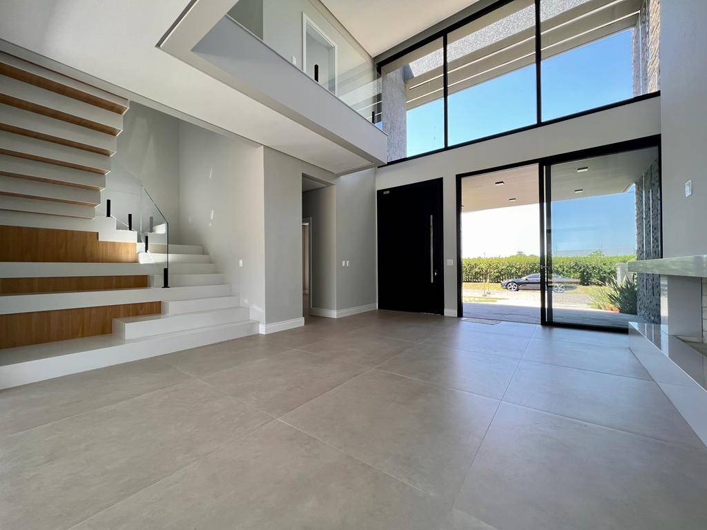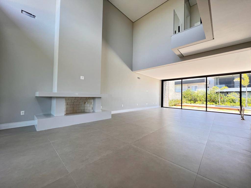 Casa em condomínio a venda em Capão da Canoa, com 4 suítes sendo 1 master com closet. Banho bancada com duas cubas, e banho ele/ela com chuveiros no teto. Amplo Sala de Estar com pé-direito duplo, cozinha americana, banheiro de serviço para piscina. Um abrigo para 2 carros compõe com a fachada moderna. Piscina com sistema de aquecimento solar. Fundos para alameda com belo pomar. Esquadrias em PVC preto externo e branco interno no perfil Kömmerling. Alto padrão de acabamento, com concreto aparente, revestimentos em pedra natural, iluminação em LED, ripado em alumínio, porta de entrada em PVC.