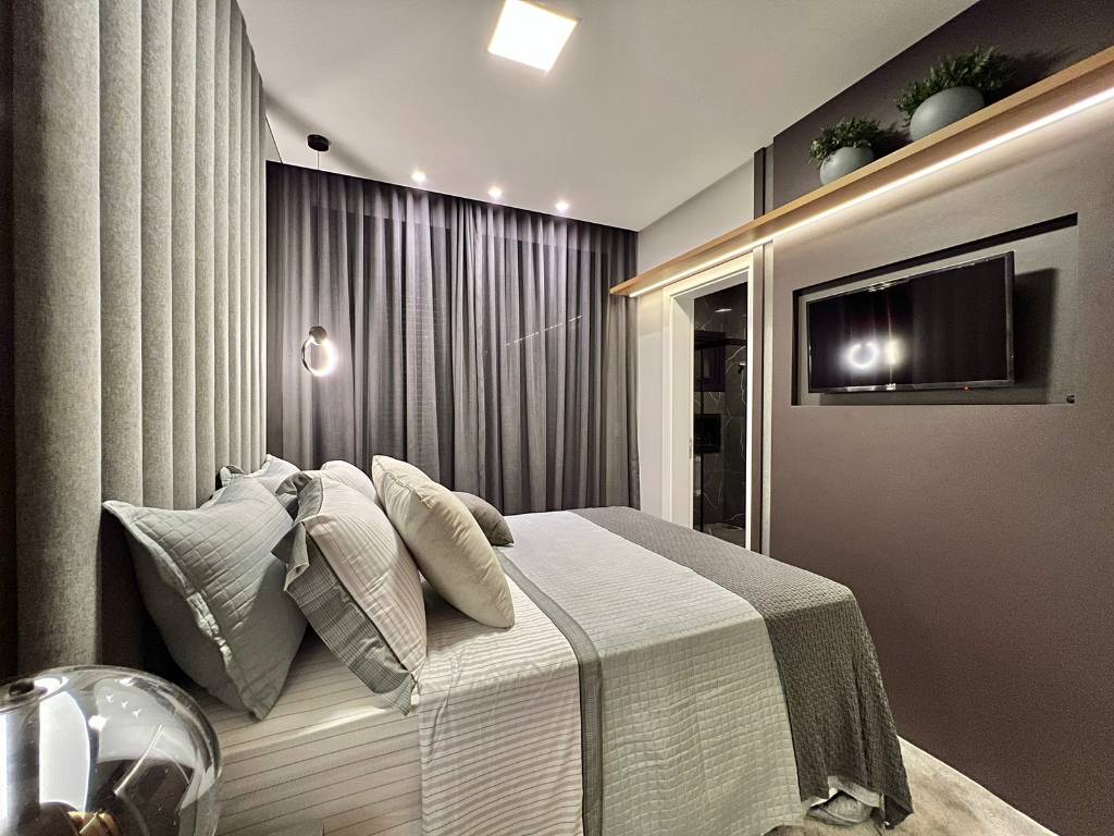Casa Térrea com 243 M², Fachada moderna e imponente, 4 suítes, amplo living, pé direito duplo, Mobiliada e decorada, lareira revestida c/ granito nero bianco, espaço gourmet c/ churrasqueira rotativa com sensor de temperatura e bifeteira, cozinha separada, aberturas em PVC preta, com persianas motorizadas, cortinas e persianas automatizadas, piscina de concreto, lavabo, split em todas as peças, Jardim com irrigação, iluminação e Oliveira, Lavanderia, Internete muito mais. Consulte condições facilitadas de pagamento