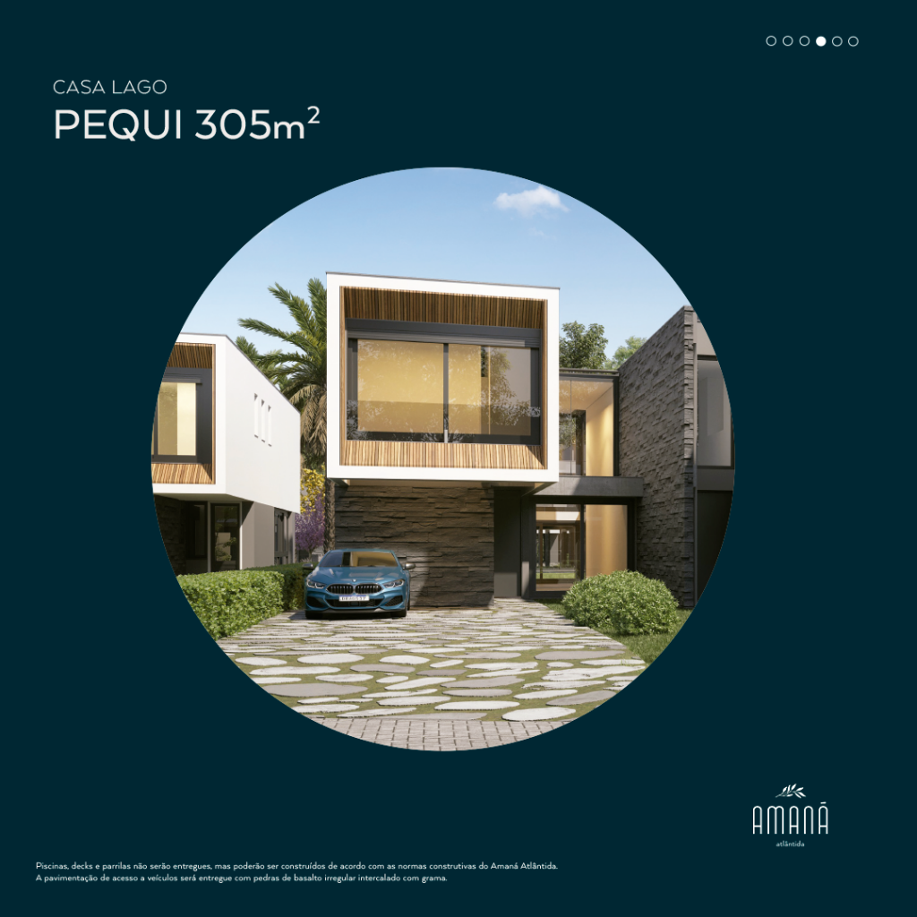 Conheça a Casa Pequi, um conceito de 305m² que contempla 4 suítes sendo uma delas no pavimento térreo. Apresenta um amplo pátio em frente e, ao fundo possui uma maravilhosa varanda com piscina que avança sobre o lago. Porque viver perto da água é tudo o que eu sempre quis. Doce ou salgada, sempre indica vida. Revigora o corpo e alimenta a alma. A sua casa na praia, aqui, também é casa na água: A onda agitada e a calmaria do lago. O charme de um condomínio e a simplicidade da infância. Aproveitar e se deixar encantar. No calor ou na brisa, na noite ou no dia.
