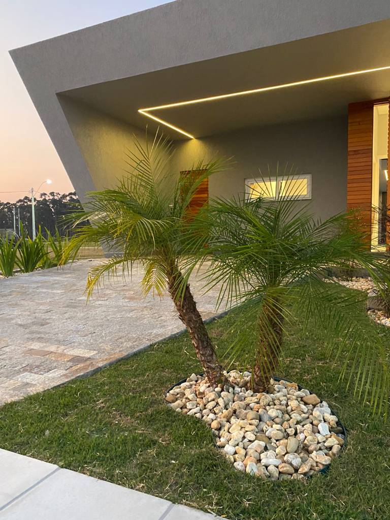 Linda casa térrea no bairro planejado Nova Xangri-Lá, projeto moderno, são 150m² distribuídos em 03 suítes individuais, amplo living em 03 ambientes com lareira, cozinha americana com churrasqueira, lavabo, área de serviço, pátio com espaço para piscina, abrigo para 02 carros!