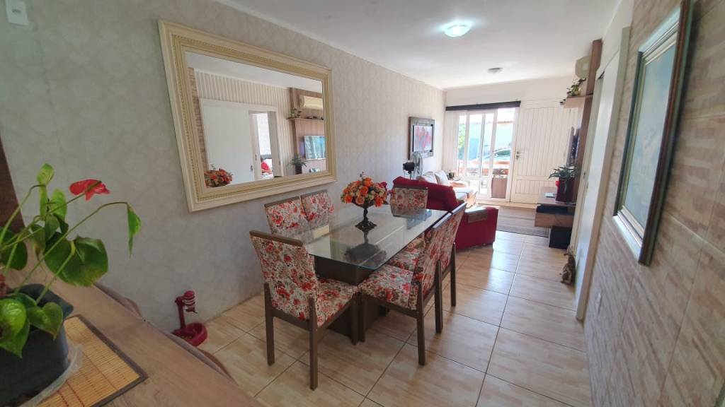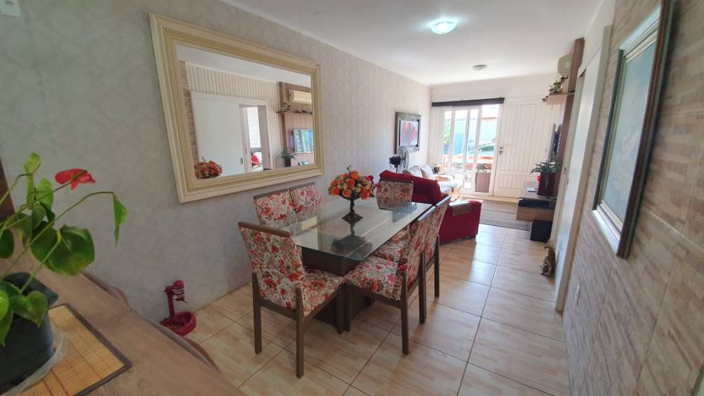 Casa com 03 dormitórios, sendo 01 suíte, living amplo com 02 ambientes, banho social, cozinha americana com churrasqueira, área de serviço, vaga de estacionamento, mobiliada.