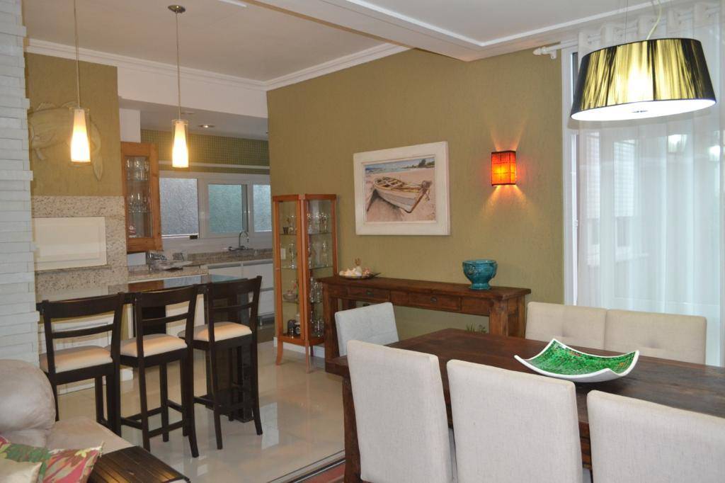 Lindo sobrado a venda em Condominio Fechado, muito bem mobiliado. Com 04 amplas suítes sendo 01 delas no térreo e outra com sacada, ainda conta com o living em 02 ambientes com lareira e lavabo. Completam a casa uma cozinha bem distribuida e um espaço gourmet com a churrasqueira. Na parte externa temos uma área de serviço, pátio privativo aos fundos e ainda abrigo para carros.