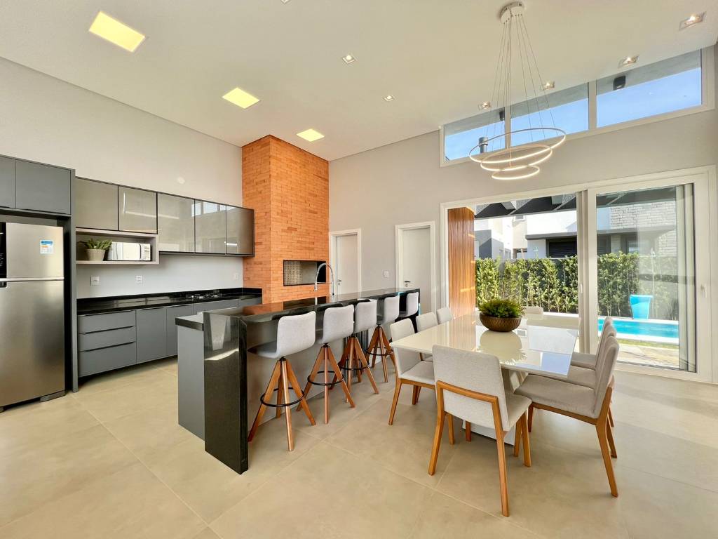 Um condomínio com acesso pelo Centro de Xangri-Lá, infraestrutura completa de esporte, lazer e segurança, uma residência em rua privativa com terreno diferenciado, mobiliada e decorada, com 4 dorm sendo 2 suíte, lavabo, finamente mobiliada e decorada, jardim de inverno 170 metros, piscina, living 3 ambientes com lareira, cozinha ampla estilo americana com gourmet e churrasqueira, lavanderia, varanda e amplo pátio com piscina, vaga para carros. Entrada saldo 24 x aceitando dação ate R$ 700 mil reais aceita financiamento bancário
