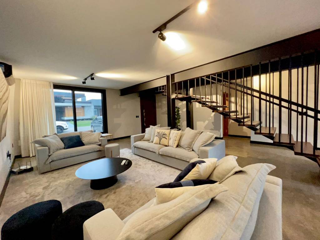 Excelente sobrado a venda no Condomínio Blue. Lindo sobrado na beira do lago, mobiliado e decorado, composto por 04 suítes individuais, sendo 01 master e 01 térrea, amplo living em 03 ambientes, cozinha americana, churrasqueira externa e interna, vagas para carros e uma bela vista para o lago.