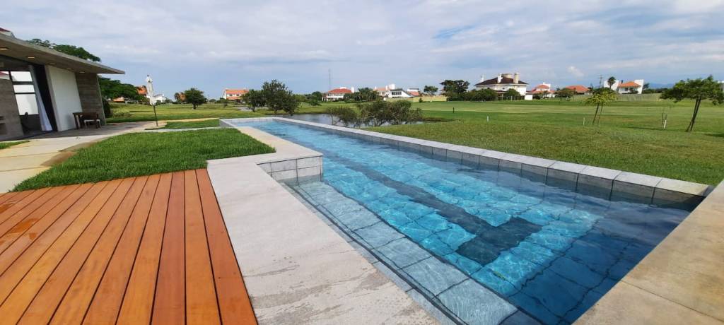 Magnífico sobrado com altíssimo padrão de acabamento, na beira do lago, finamente mobiliado e decorado, composto por 05 amplas suítes sendo 1 térrea transformada em escritório e 1 máster com hidro, closet e lareira, living em 3 ambientes com lareira, cozinha estilo americana com churrasqueira, lavanderia, garagem fechada para 2 carros, piscina em concreto com raia de 15m e borda infinita, lindo paisagismo.