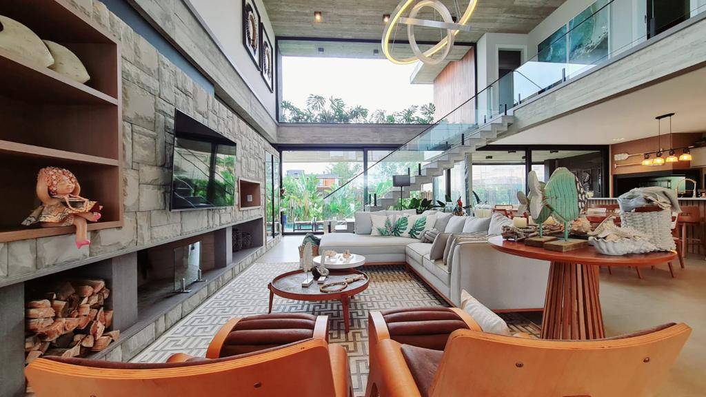 Lindo Sobrado, Design Contemporâneo, com excelente orientação solar, mobiliado e decorado, composto por 05 amplas suítes, lavabo, cozinha americana, espaço gourmet com churrasqueira, amplo living em 4 ambientes, lareira, área de serviço, piscina em concreto com aquecimento e vaga para veículos.